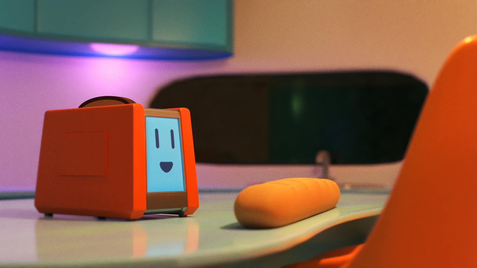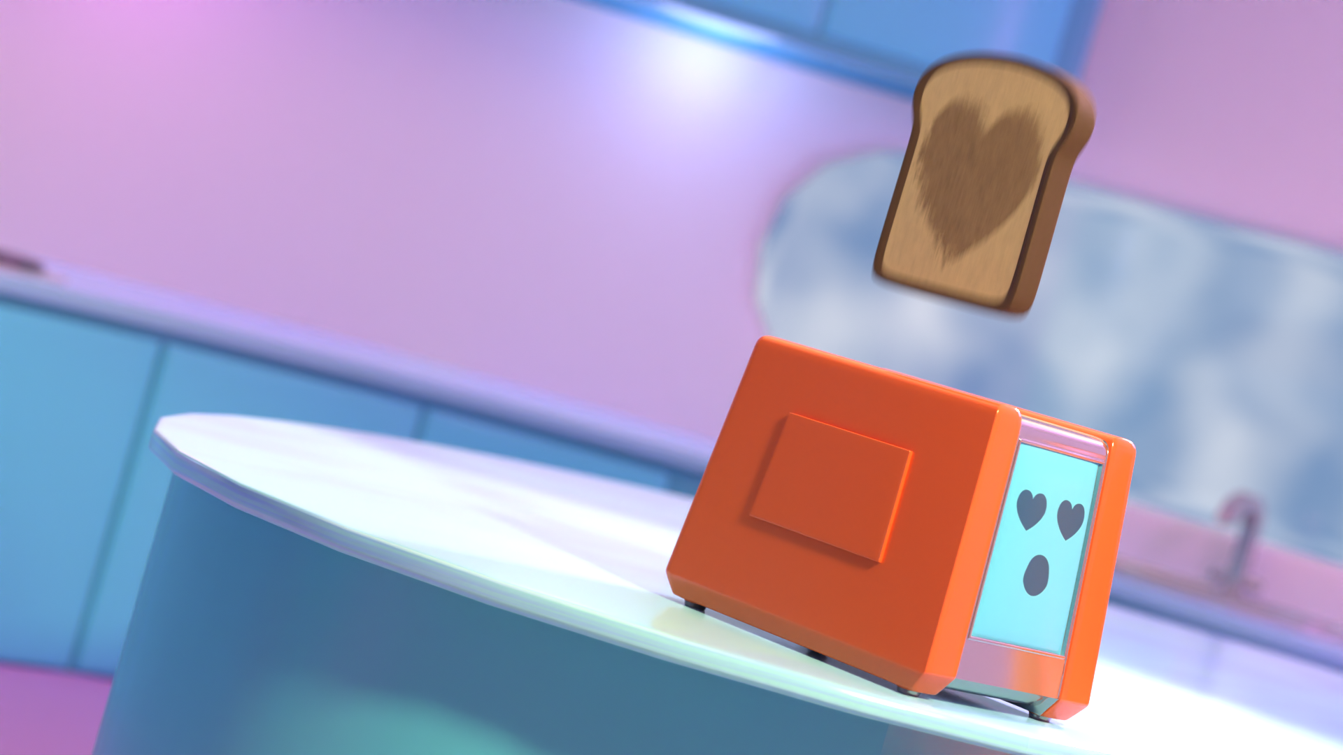 Toaster character and environment modelled, textured and animated for my 2nd year film pitch 'How My Toaster Fell in Love'.